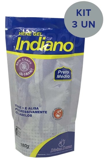 Kit C/ 3un Hene Indiano Gel Médio 180g Divina Dama